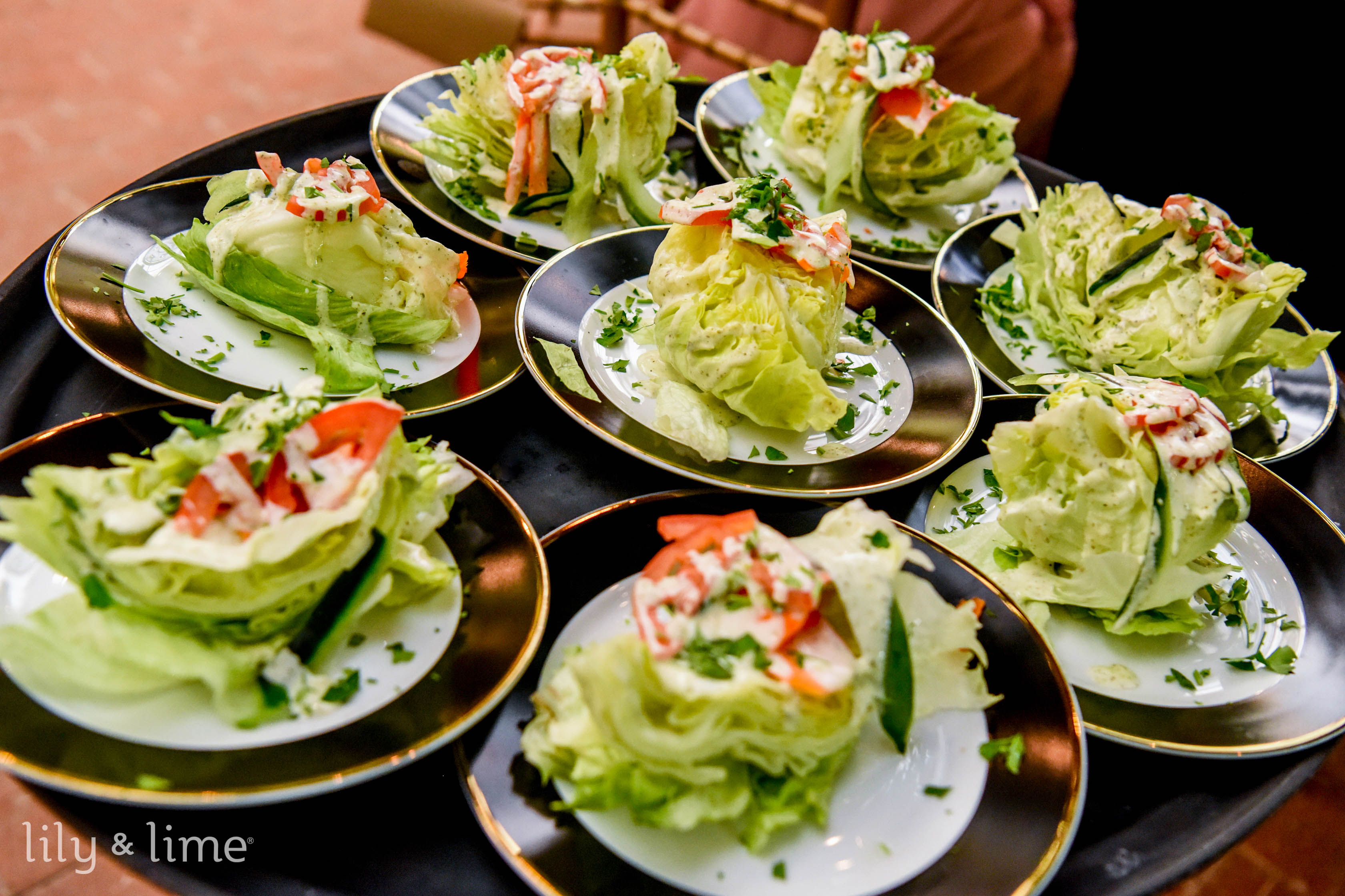Caprese Salad with a Twist: Elevating the classic Caprese salad, this version introduces a delightful twist that's perfect for a Fourth of July wedding. Between layers of ripe, juicy tomatoes and fresh, creamy mozzarella, we weave in fragrant basil leaves and a drizzle of rich balsamic glaze. But the twist comes in with the addition of sweet, grilled peaches, which add an unexpected pop of flavor and a touch of patriotic color. This dish not only captures the essence of summer with its fresh ingredients but also adds an elevated sense of celebration to your wedding table. Serve this as a refreshing starter or a light side dish that beautifully complements the more substantial barbecue offerings, making sure every bite is bursting with flavor and joy.