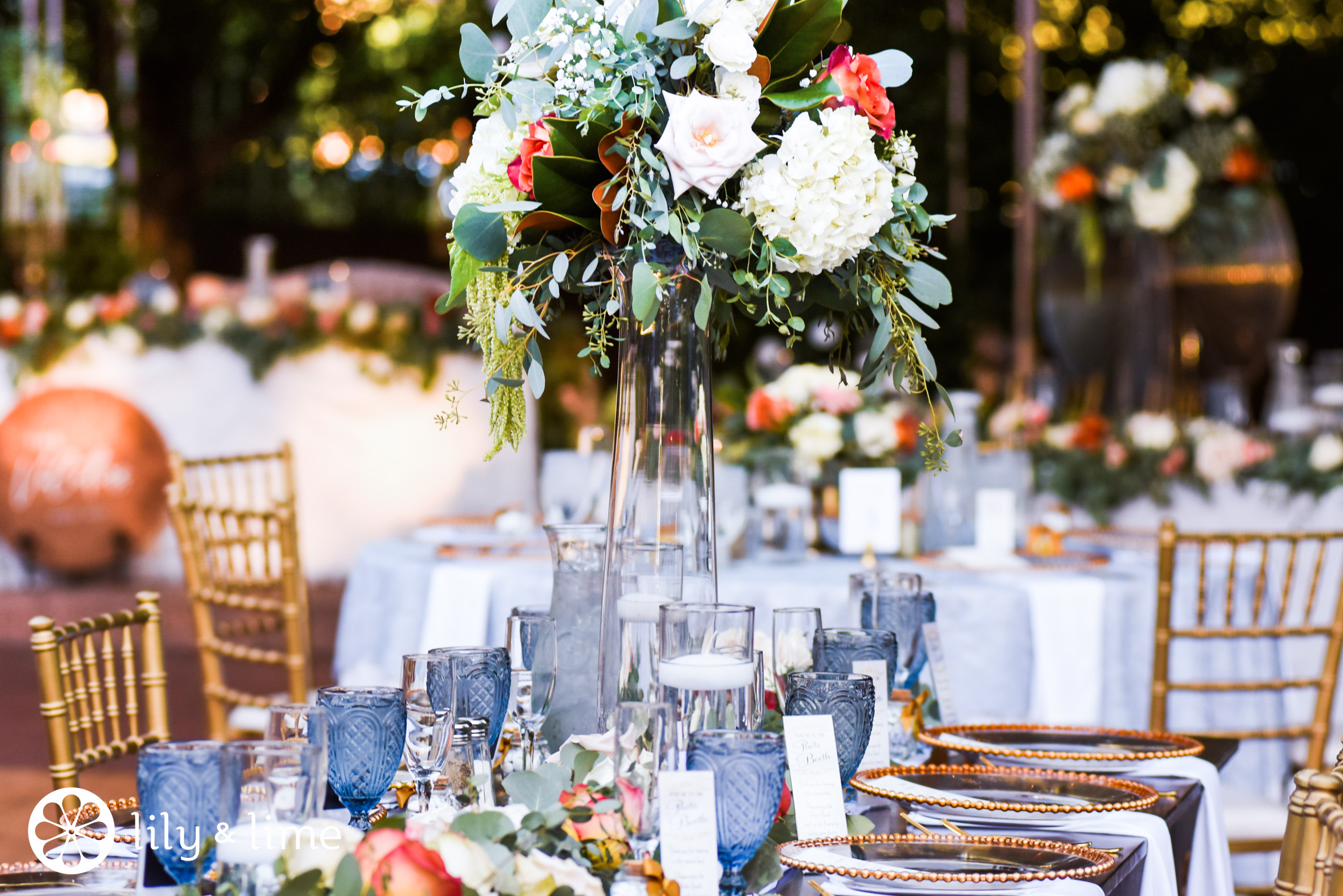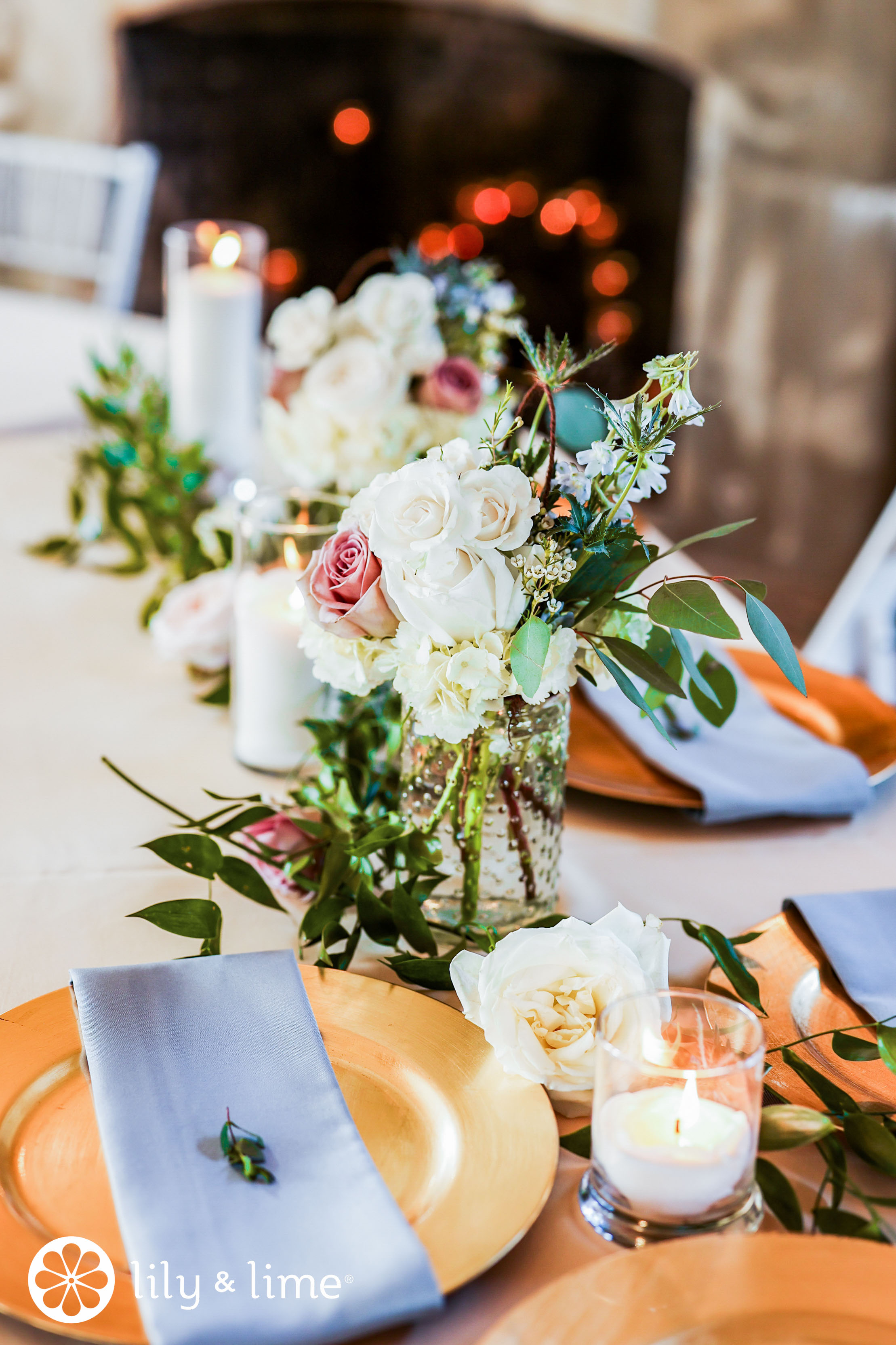 Next, we love the dusty blue, white, gray, and deep green with loads of greenery! What we love about this theme is that it is timeless! This is perfect for early winter weddings, or for fall weddings! The reason why those two seasons come to mind is the color combination. Dusty blue is neutral, pretty, and delicate, and so is white. However, gray and deep green give it a beautiful charm with their deep hues. Bigger accents and details of weddings, such as wedding signage and bigger chunks of decor can be in deep green or gray, while white and dusty blue can fill in the smaller details. It will give your wedding a wonderful look.