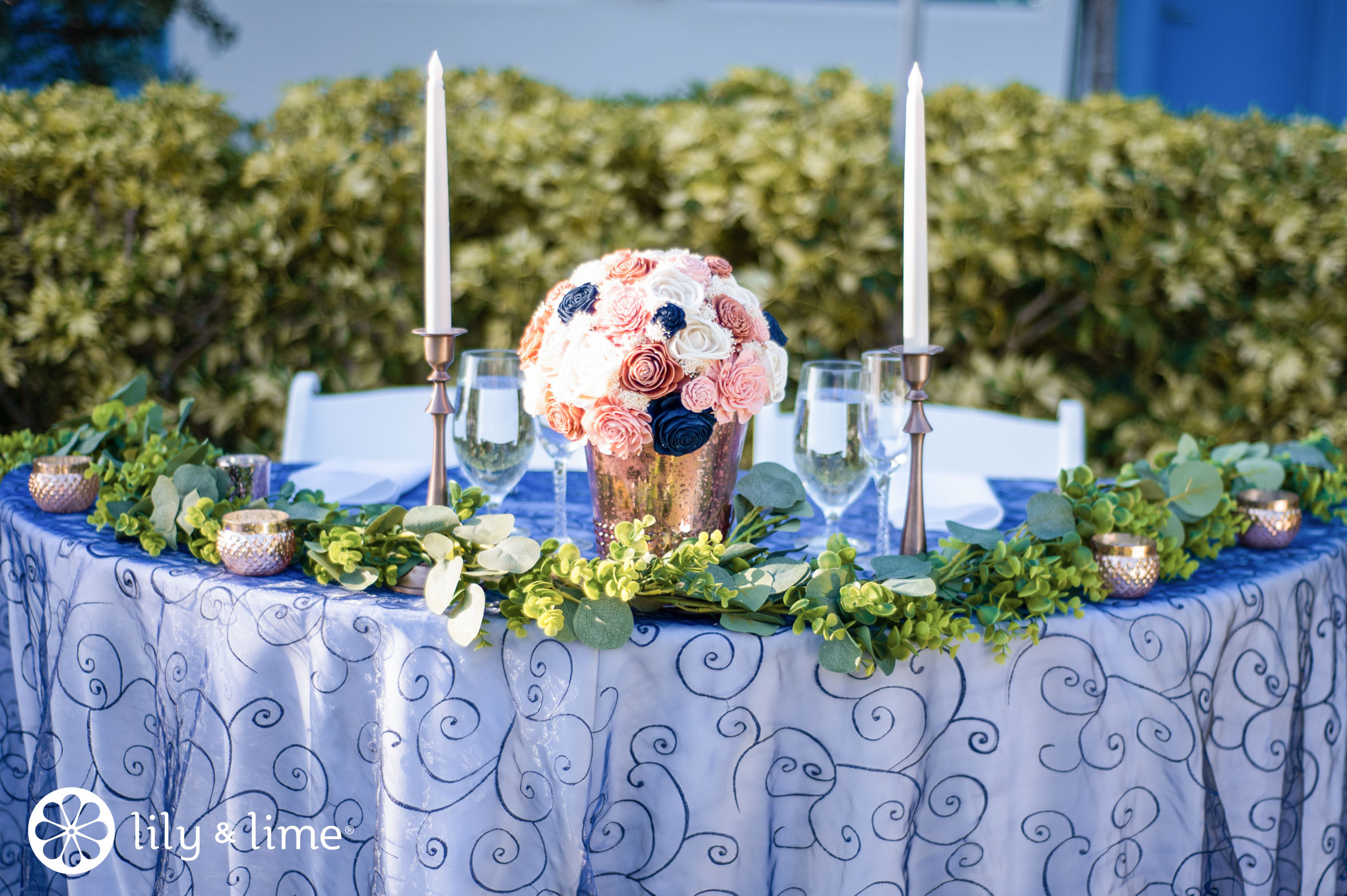 But if you feel that balloons and making them the color you want them to be is too much work, then how about using paper lanterns? Paper lantern wedding decor ideas are just right for any session. Whether you have a day wedding or an evening wedding, dusty blue paper lanterns add class and beauty! For an evening wedding, you can even add some electric tea lights to give these a magical touch. Another way to add a wonderful touch to your accents, and that too on a budget and which is also a DIY-friendly idea - dusty blue bordered mirrors! The thing about mirrors is that even if you don’t have a bunch of mirrors that you can use for your DIY project, you can buy them in bulk and create a wonderful mirror backdrop! All you need is a bunch of mirrors and dusty blue paint. Then, all you need to do is arrange the mirrors on a solid surface, which can be used to hang up on a wall. If you have differently shaped mirrors, you can arrange them to look as you want them, or arrange them in order of size. And if you have the same-sized mirrors, just paste them on a surface you can use, for example, a large piece of cardboard. Once you have the mirrors pasted to the surface, you can use the dusty blue paint to paint over the mirrors! All you need to do is settle on the scheme. You can either paint the mirrors that border the backdrop, or you can paint the mirror alternatively. Apart from this, another cool idea is to paint all of the mirrors with the colors of your wedding theme! However, when you take on this DIY project, make sure that you find a surface that can withstand the weight of the mirrors you will place on them!