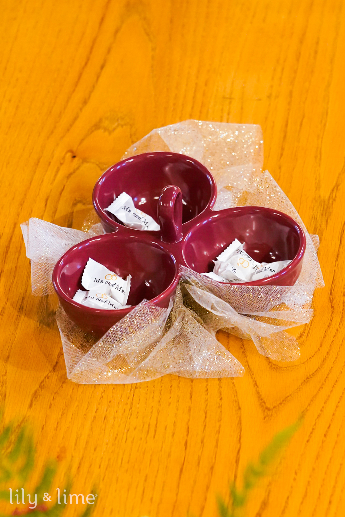 Favors: Giving your guests a small token of appreciation is a nice touch for any wedding. Thrift stores have a great selection of glassware, which you can fill with candy or other treats. You can also find small trinkets or even vintage postcards to give your guests as a reminder of your special day.