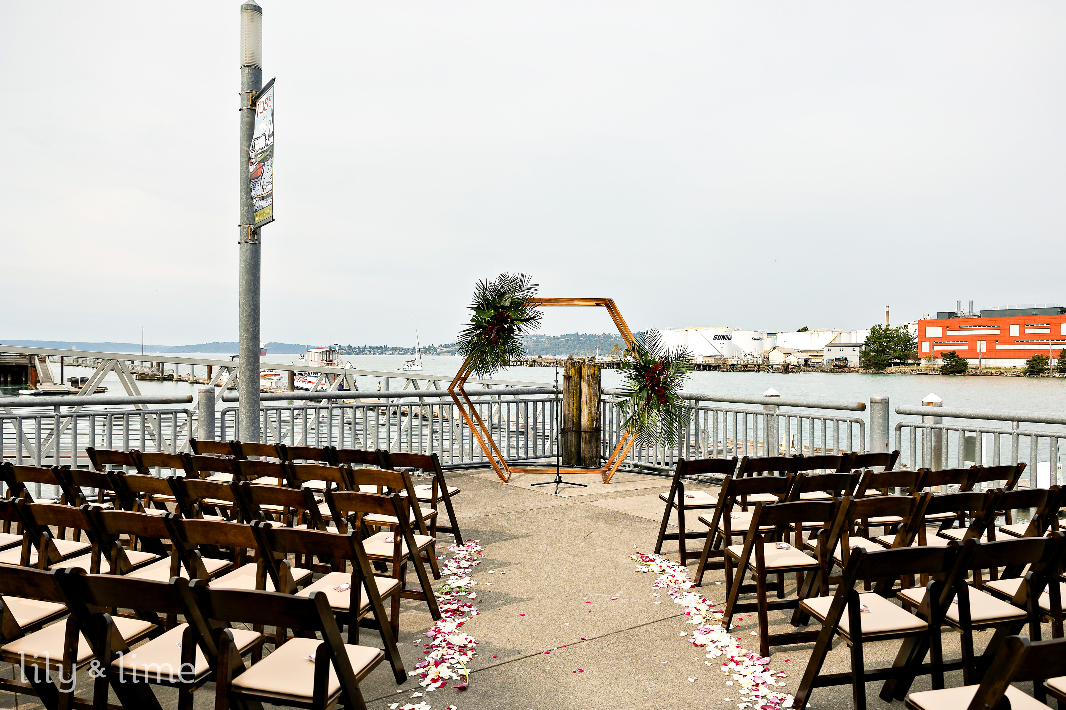 The venue’s unique blend of industrial and nautical aesthetics provides a versatile canvas for any wedding theme. Whether adorned with lush greenery and soft florals or left to shine in its raw, rustic beauty, Foss Waterway Seaport radiates character and sophistication. The waterfront setting adds a touch of romance, with the gentle lapping of waves and the occasional sailboat gliding by, creating a serene backdrop for both the ceremony and reception.