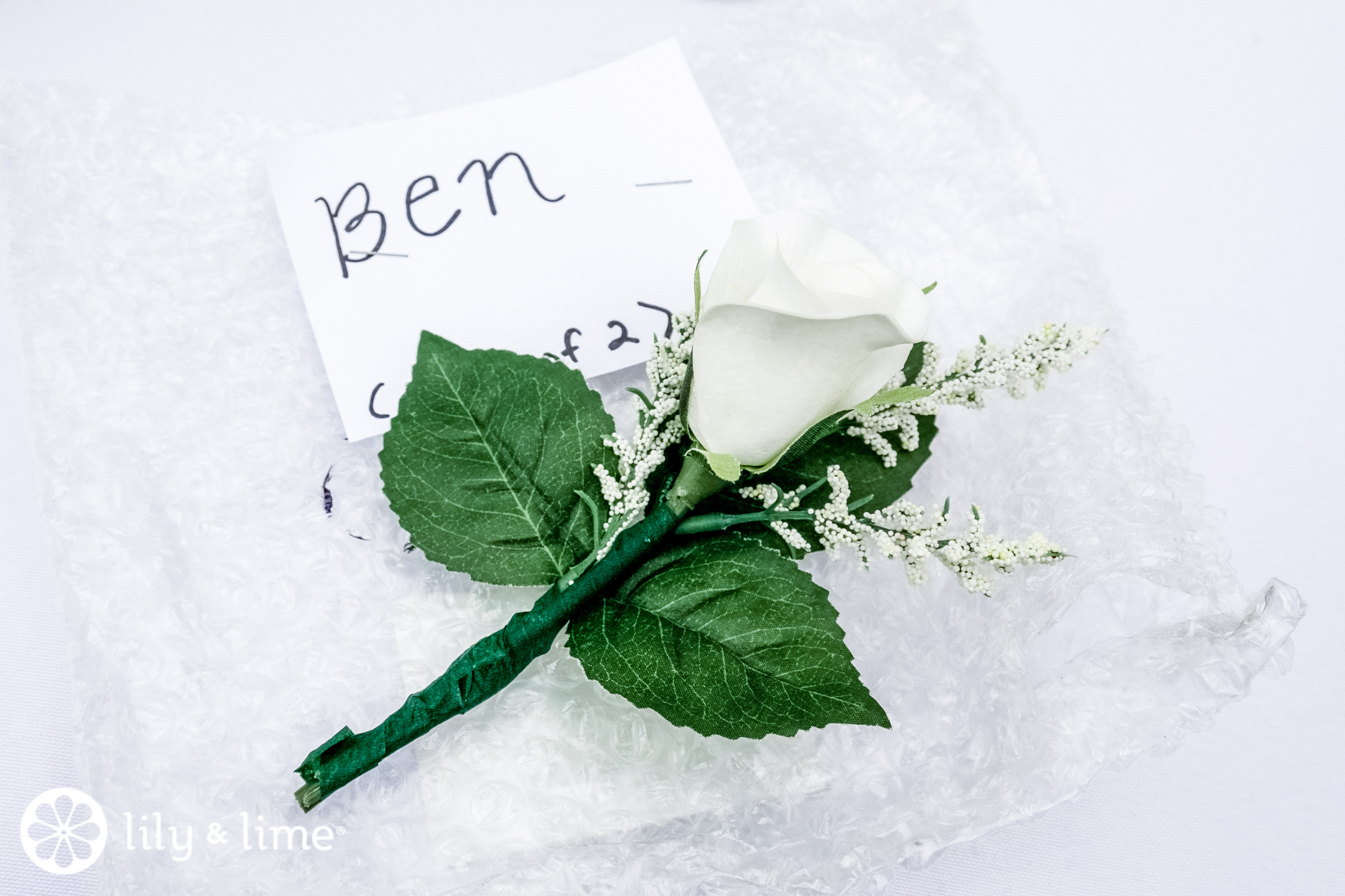 DIY wedding boutonnieres are just little posies, so if you can put together a bridal bouquet, you can certainly put together one or two boutonnieres. If you prefer a slightly more masculine aesthetic, feel free to use the same mixture as the bouquets and tie everything together with ribbon or twine. For instance, if you are having a spring wedding, go for a combination of lavender and olive leaf sprigs that can complement a French châteaux wedding.