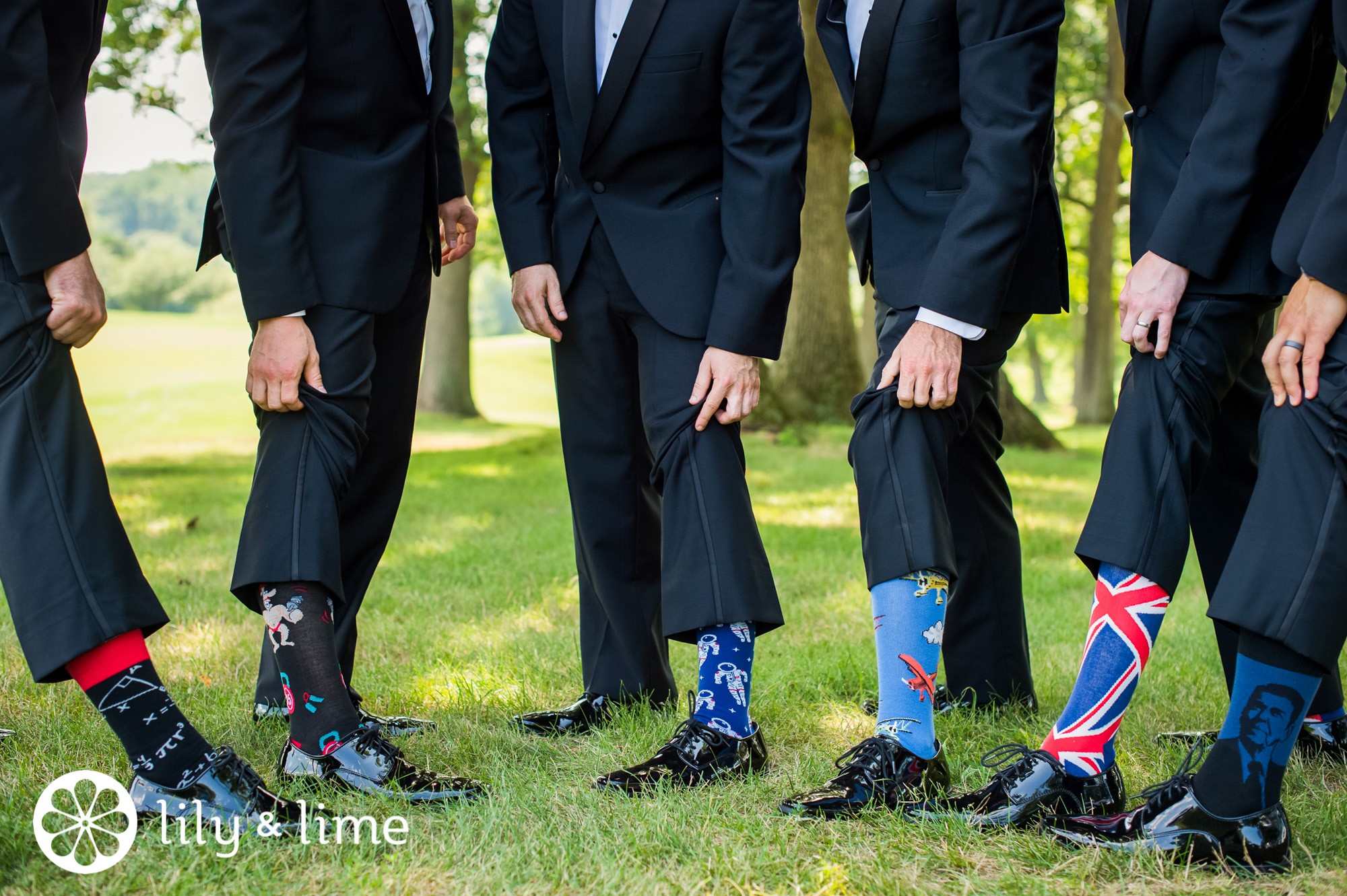 Socks are another clever way to show off your style. Whether you choose a single theme or play off individual personalities, showing off your funky socks makes for an awesome photo. From the political - Union Jack and Ronald Reagan - to the brainy - astronauts and math equations - we just love the variety represented here! Also a great gift for your buddies.