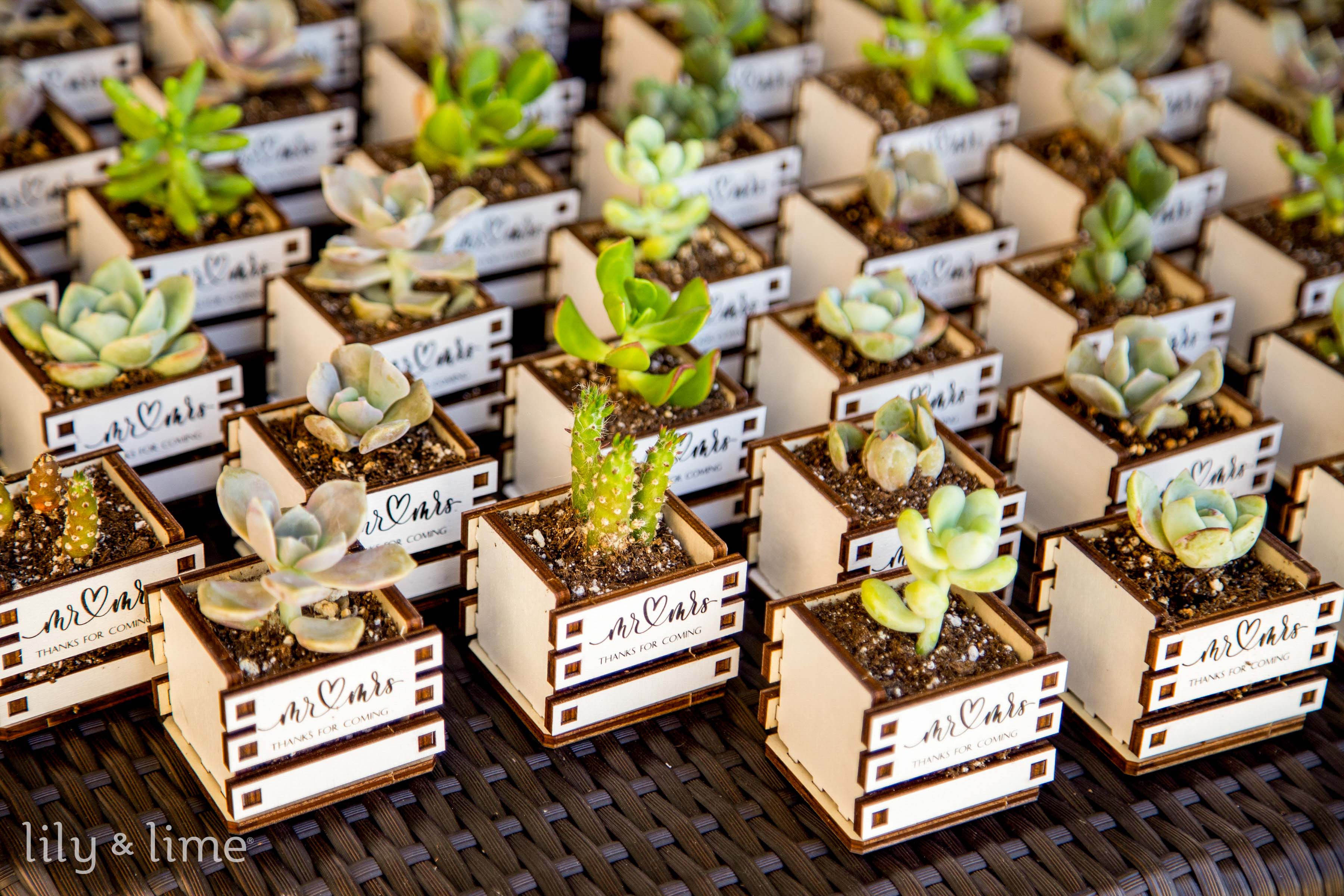 Succulent Plants: Succulents are not only trendy but also make for charming and long-lasting wedding favors. These low-maintenance plants come in various shapes and sizes, making them a versatile option that guests can enjoy as home decor.