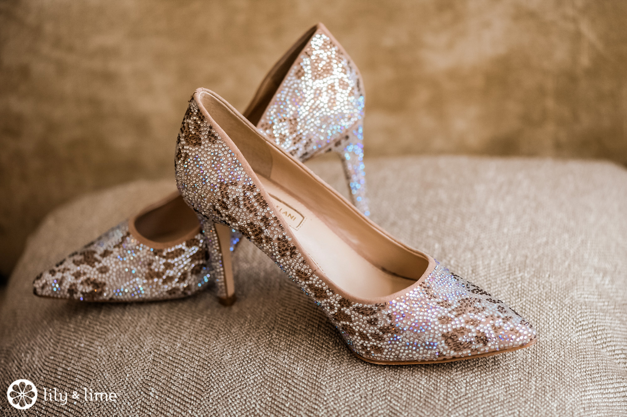 Closed toed shoes with some sparkle hint at glittering snowfall. The perfect touch for a winter bridal look!