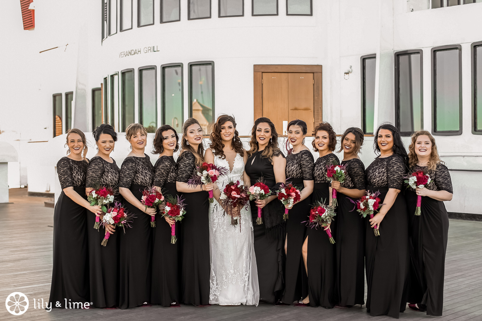 Bridesmaids look striking in darker colored dresses. You can even play with black for bridesmaids if you're looking for extra drama.