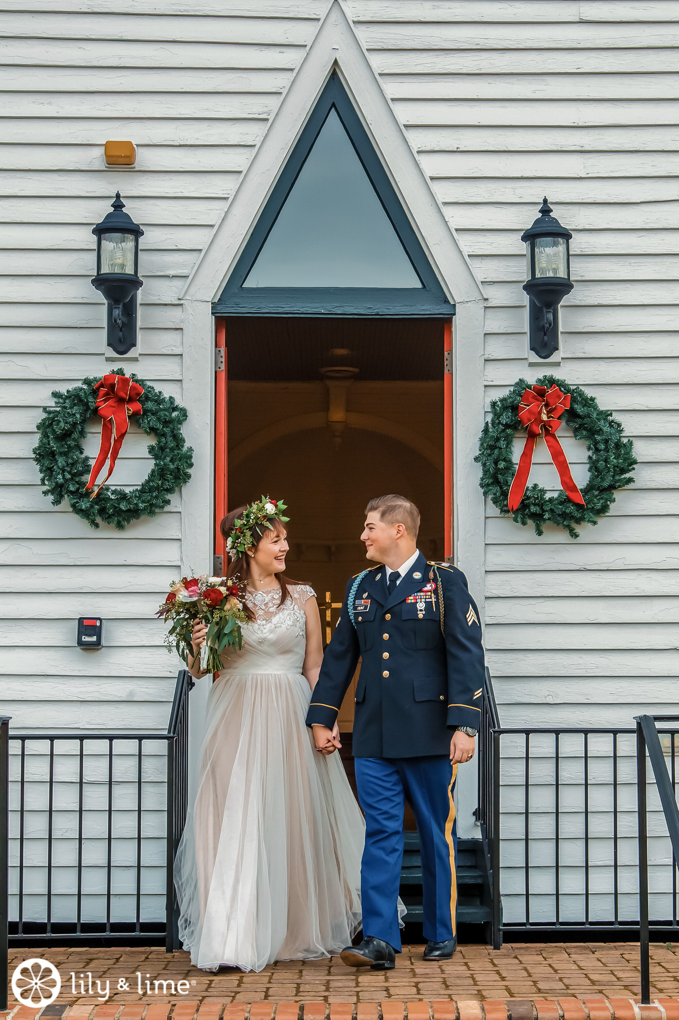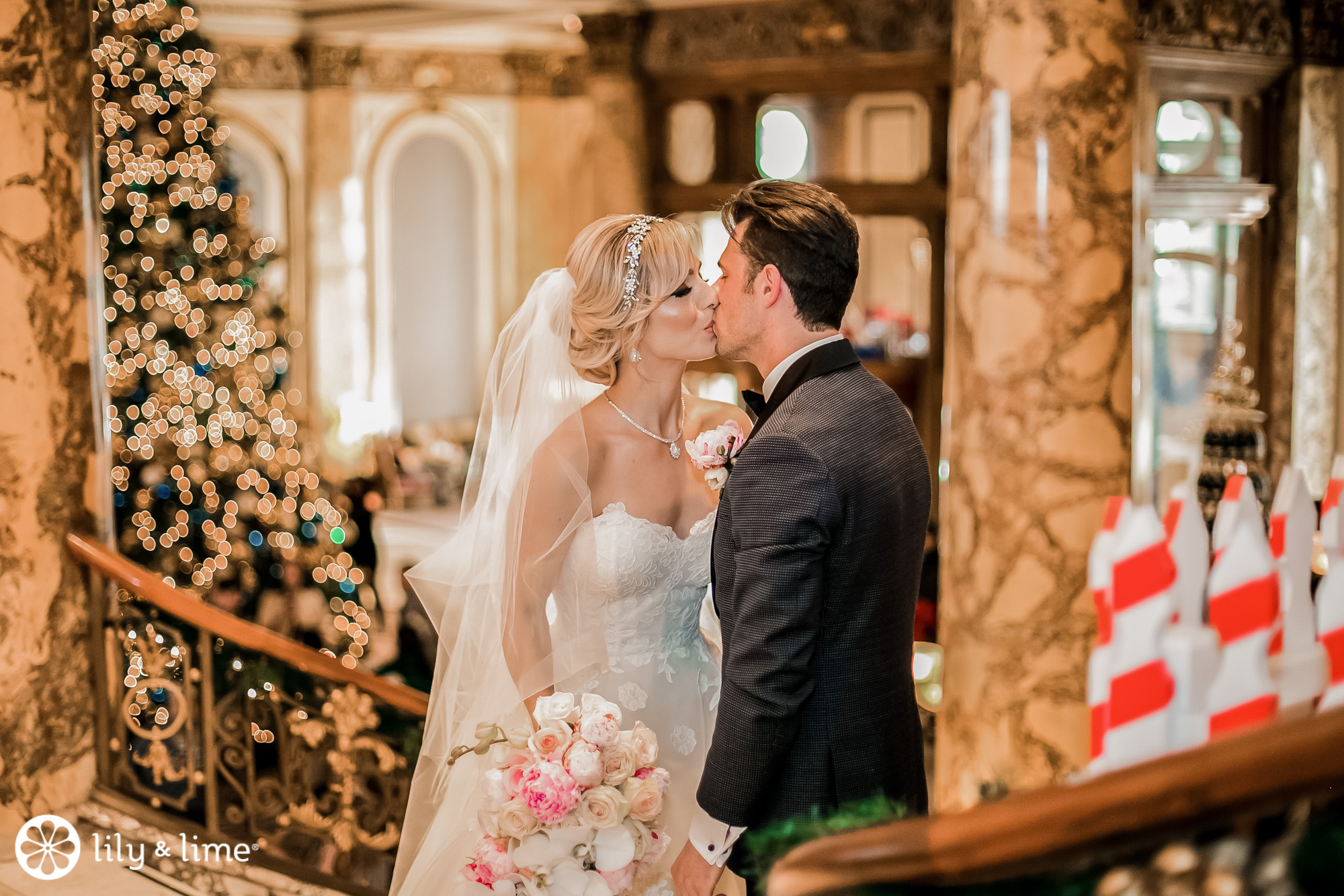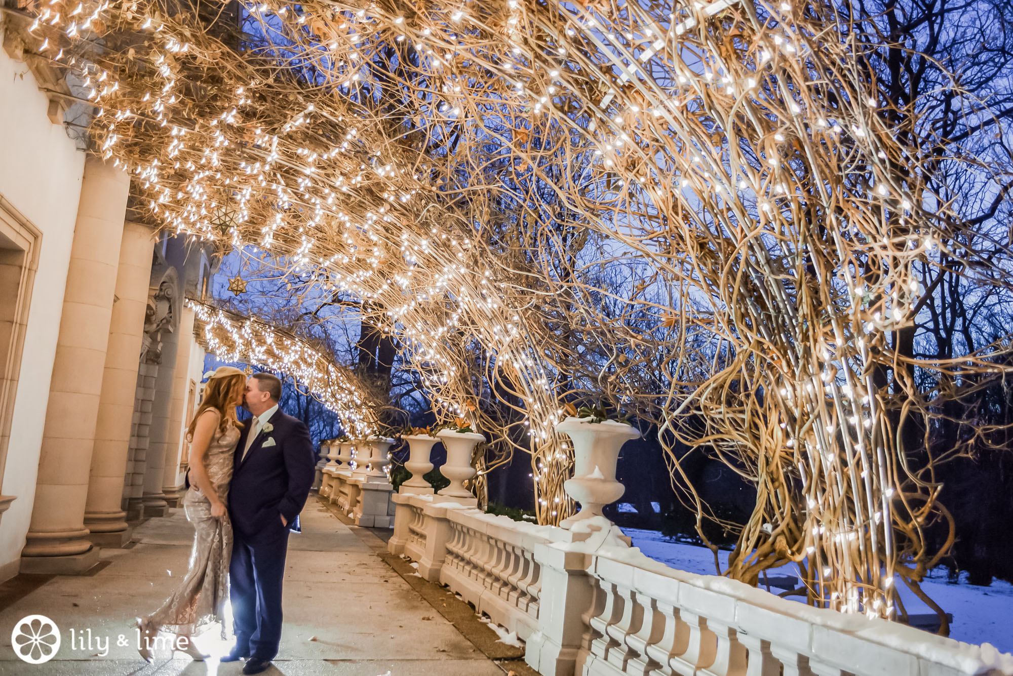 Get the most out of your wedding photography by picking locations that are already decorated for the holidays. Let someone else do the work to create a stunning backdrop for you. Planning a wedding is hard enough!
