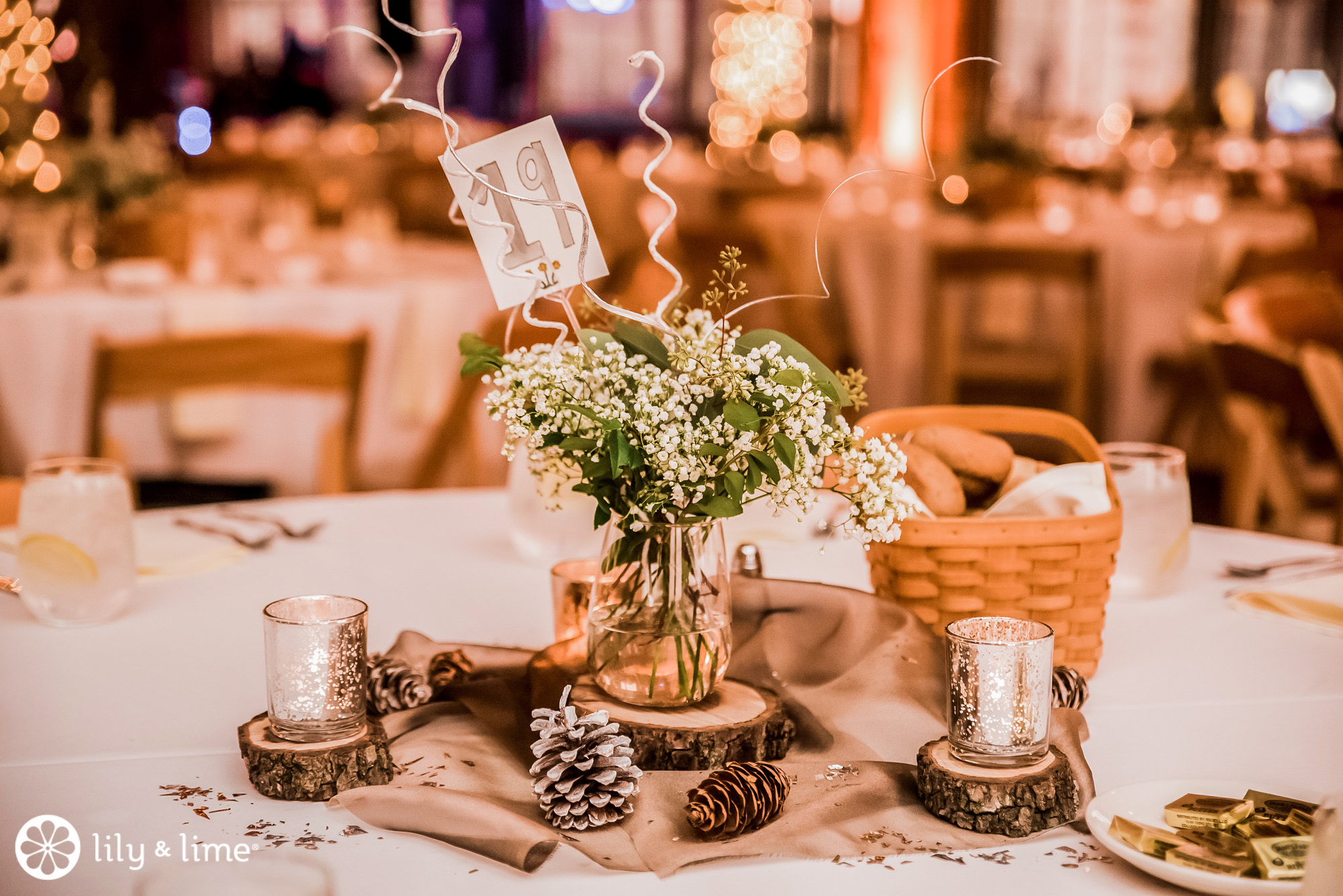 You can also include pinecones and wood slices in your décor to bring some woodsy flair. Or, you can go even go with orange slices if you're feeling solstice-inspired wedding decorations.